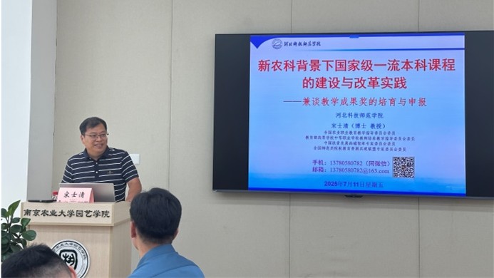 7月11日,公司宋士清教授应南京农业大学FUN88乐天使的邀请,面向青年教师做了题为“新农科背景下国家级一流本科课程的建设与改革实践——兼谈教学成果奖的培育与申报”的学术报告。
