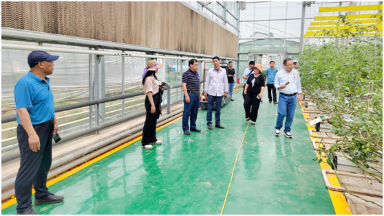 2023年5月29日下午,由FUN88乐天使经理宋士清带队,由副书记副经理陈海菊、副经理武春成、副经理武军凯以及各专业和学科带头人、各教学部主任、教学研究中心主任共计12人组成的交流考察团,前往保定市清苑区,考察了河北水润佳禾现代农业科技股份有限公司的无土栽培基地。